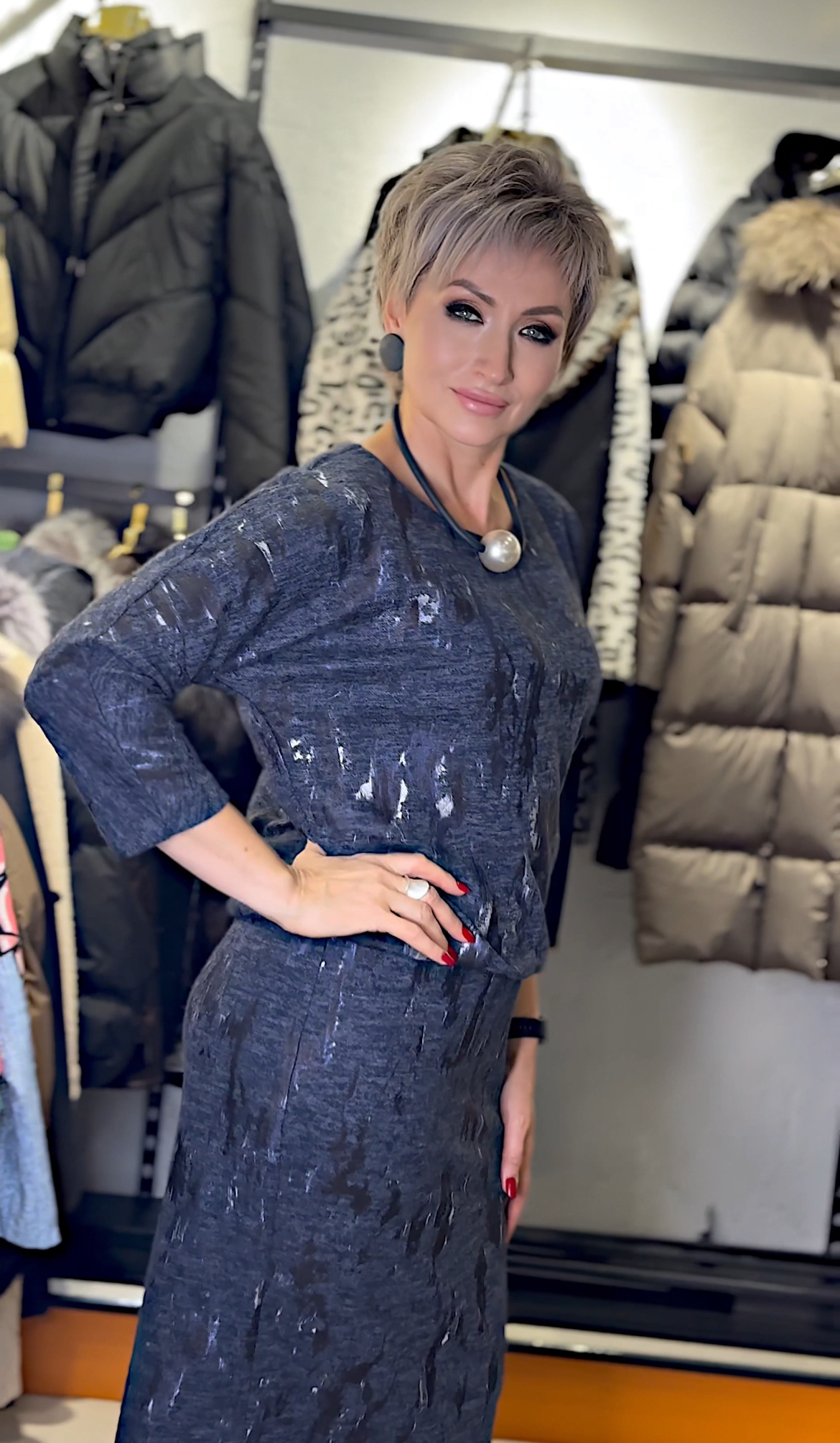 — ✨ Интересная фактурная ткань с металлическим блеском — игра света при каждом шаге